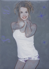 MODSTAND, om end tilsat mere humor, findes også hos Elmer, hvis suite af bemalede plakater (af starletter) er en gave både til Elmer, til ophængningen - og til udstillingen. Skønt hans grå kolorit giver hans ting et gennemgående