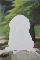 særpræg, ja, nærmest stempler ham, er der også noget helt uhøjtideligt og uforudsigeligt i disse pop-art inspirerede figurationer.